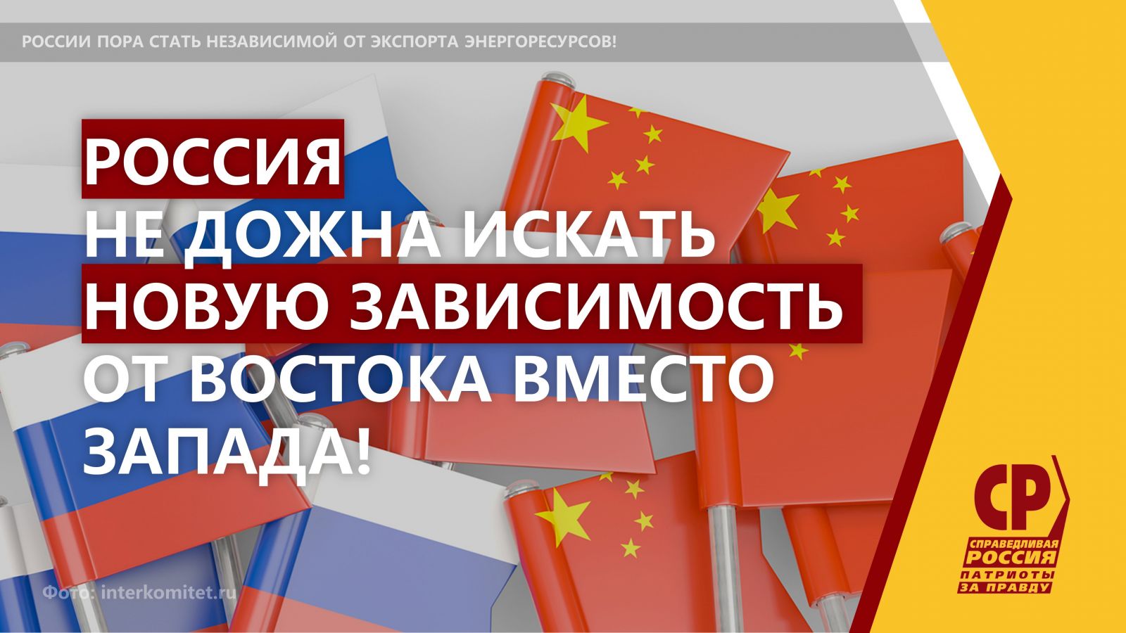 Россия не должна повторять политику ЕС и искать новую зависимость от Востока вместо прежней зависимости от Запада.