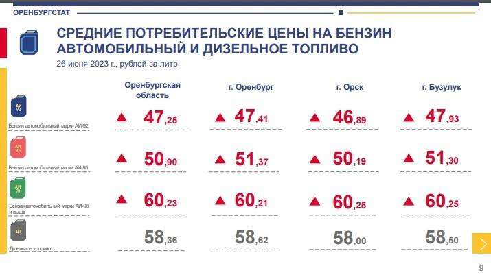 Специалисты изучили, как изменились цены с 19 по 26 июня. Вышло, что подорожал бензин всех марок. Притом, тенденция наблюдается в крупных городах региона. Так, литр бензина АИ-92 будет стоить в Оренбурге в среднем 47,41 руб., в Бузулуке – 47,93 руб., а в Орске – 46,89 руб.