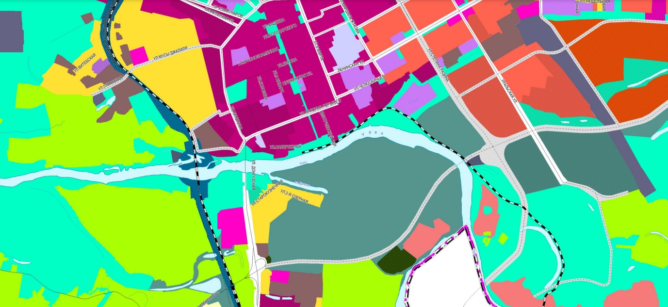 На карте Генплана также указан и квартал « Молодой Оренбург «. На днях минархитектуры публично заявило о торгах на комплексное развитие этой территории.