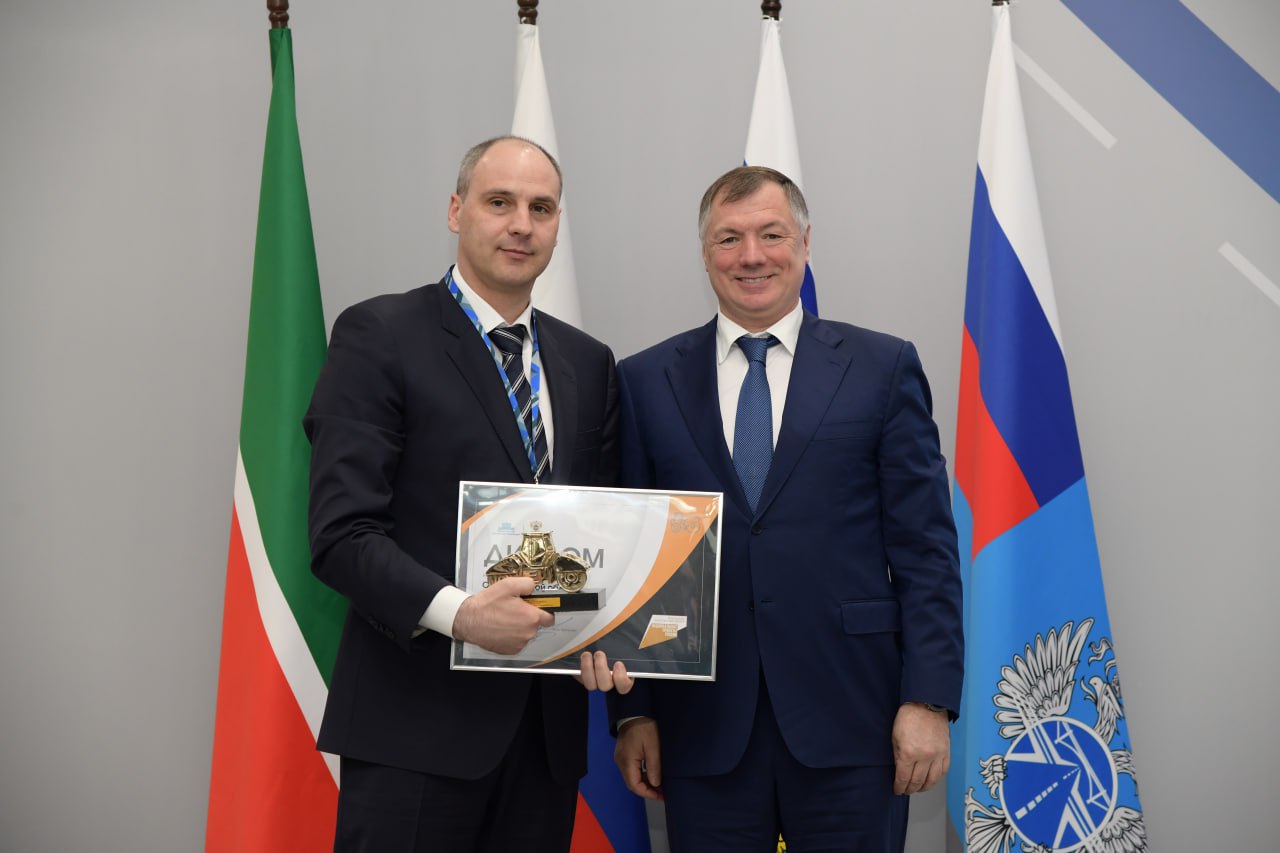 Вице-премьер РФ Марат Хуснуллин вручил губернатору Оренбургской области Денису Паслеру и министру строительства региона Александру Полухину награду «Золотой каток» по итогам реализации нацпроекта «Безопасные качественные дороги».