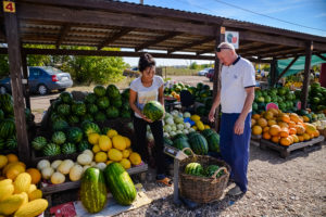 Прилавки и поддоны сезонного рынка на выезде из Соль-Илецка всегда радуют разнообразием выложенной на них продукции. Заметив наш автомобиль, дожидающиеся покупателей продавщицы выбегают навстречу, призывно размахивая руками.