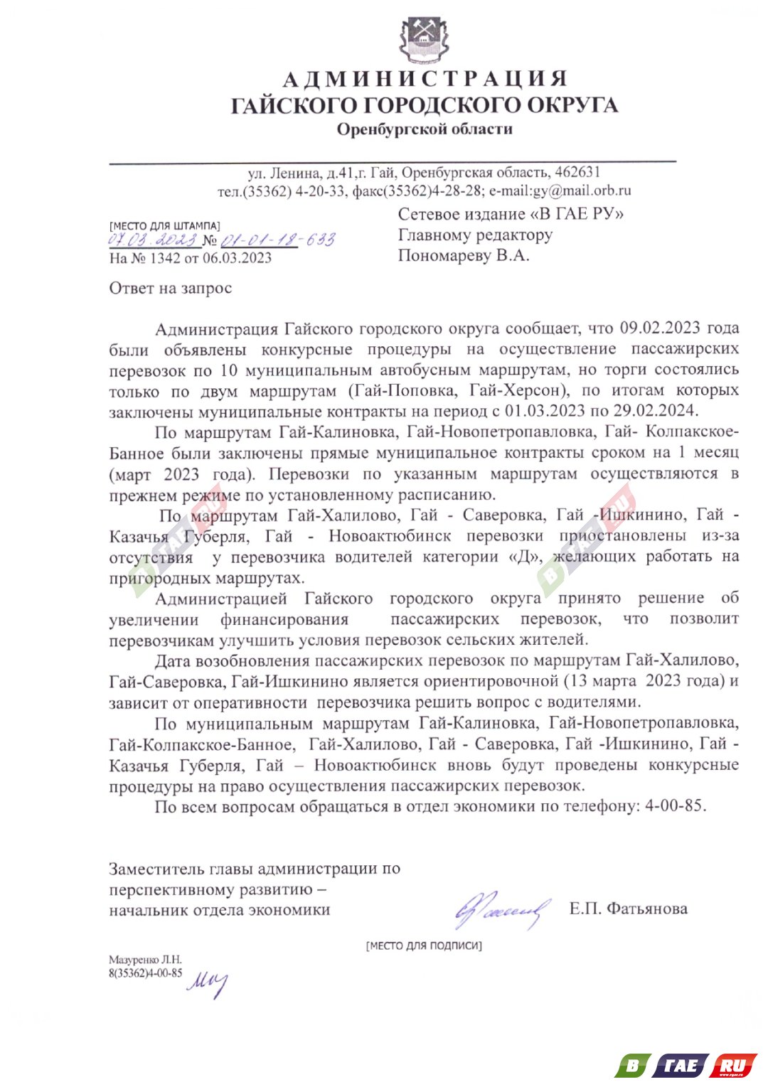 Администрация Гайского городского округа проинформировала, что возобновление пассажирских перевозок по маршрутам Гай- Халилово, Гай - Саверовка, Гай - Ишкинино является ориентировочной (13 марта 2023 года) и зависит от оперативности перевозчика решить вопрос с водителями.