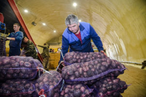 И это не все значимые проблемы, с которыми сталкиваются картофелеводы. Но вот – прибывает очередной трактор, тянущий прицеп с десятью тоннами картофеля. Прерванная работа в ангаре закипает: запускаются ленточные конвейеры, к ним встают люди, трогаются автопогрузчики. Уже через считанные минуты на деревянных поддонах начинает вырастать гора из мешков-сеток со свежим «вторым хлебом». Готовые к сбыту перемещаются в транспорт оптовых покупателей, их машины разъезжаются в разные стороны, увозя желанную продукцию.