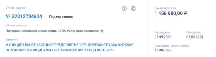 Вслед за кроссовером. МКП «Оренбургские пассажирские перевозки» объявил аукционы на поставку «Лады Весты» и «Лады Гранты»
