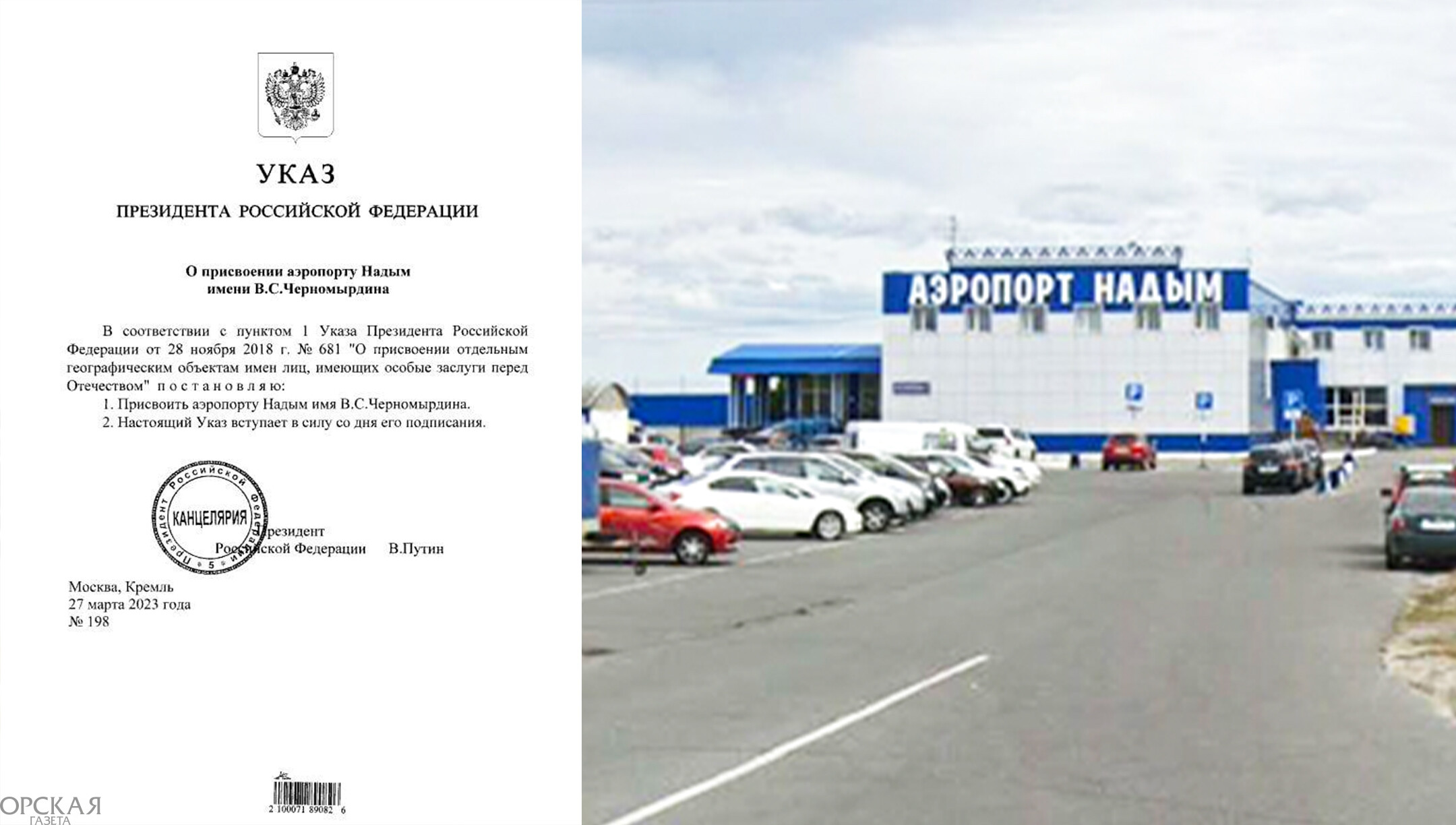Аэропорт города Надыма получил имя Виктора Черномырдина. Указ о присвоении имени знаменитого оренбуржца подписал президент России Владимир Путин.