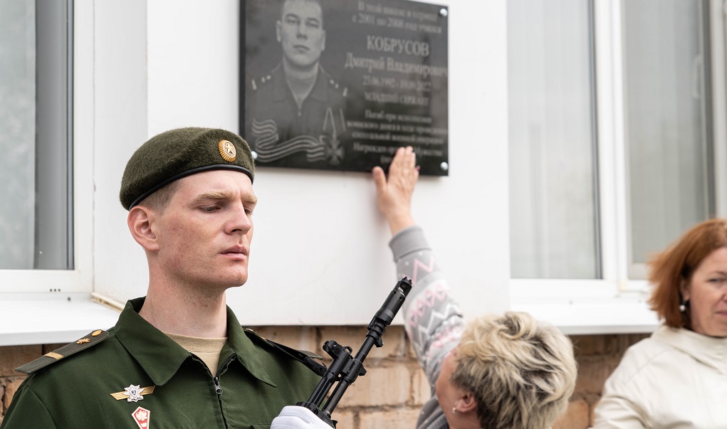 Сегодня на здании школы, где учился Дмитрий Кобрусов, открыта памятная доска. В чествовании героя, погибшего в зоне СВО, принял участие руководитель фракции «Едина Россия» в ЗС Александр Трубников.