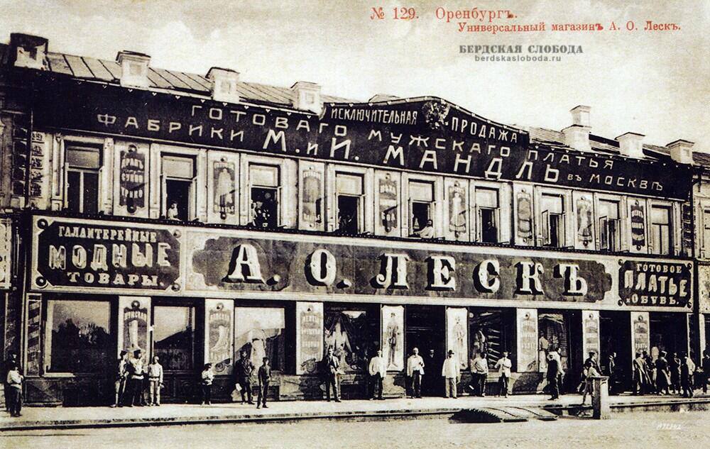 Универсальный магазин А.О. Леска расположился в северном корпусе оренбургского Гостиного двора на улице Кирова 13. Это место находится неподалеку от пересечения улиц Гостинодворская (Кирова) и Введенской (9 января).