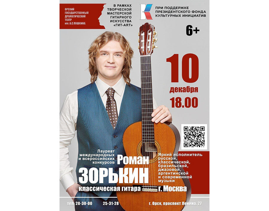 В Орске выступит известный гитарист – преподаватель Российской академии музыки имени Гнесиных Роман Зорькин. Он возглавит жюри Межрегионального фестиваля-конкурса «Гит-арт», который организует детская школа искусств № 2.
