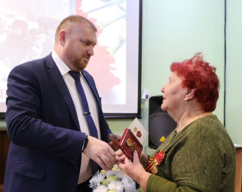 Глава Орска Артем Воробьев вручил юбилейную медаль «80 лет Победы в Великой Отечественной войне 1941 – 1945 годов» Марине Шиленко, пережившей блокаду Ленинграда. Награждение прошло в библиотеке-филиале № 6 в рамках встречи со студентами Орского нефтяного техникума.