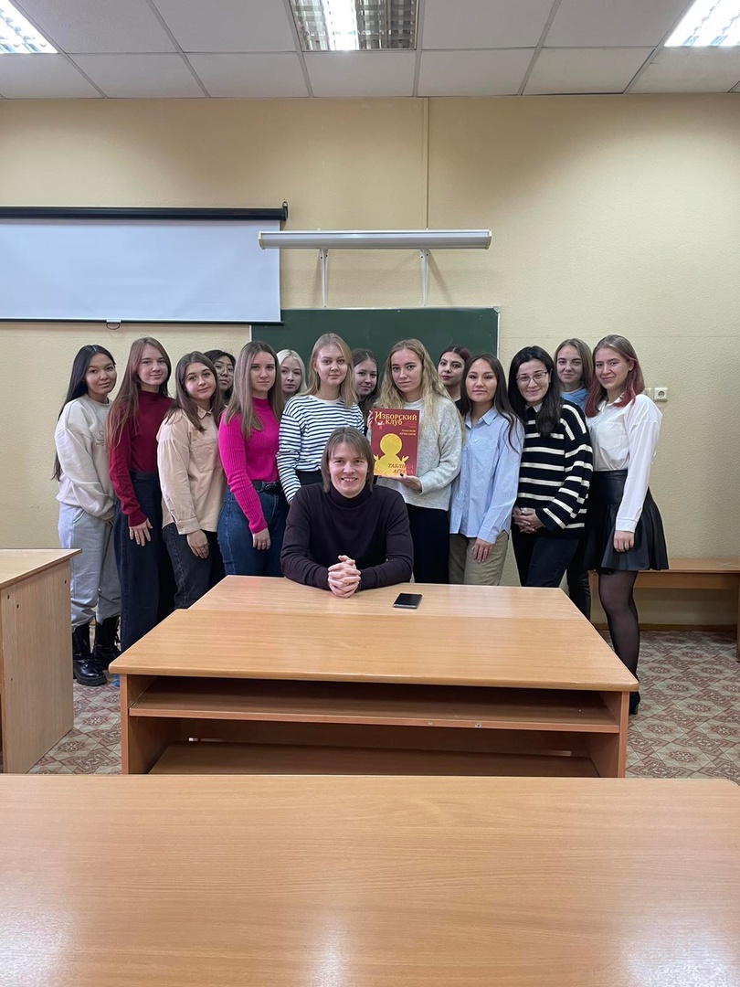 14 ноября состоялась читательская конференция "Единство - сила" с участием кандидата филологических наук, секретаря Союза писателей России, члена Изборского клуба М.А. Кильдяшова. Совместно с Михаилом Александровичем студенты обсудили сюжет прочитанного романа Александра Проханова «Таблицы Агеева». Выделили, что основной идей романа является умение каждого человека распознать код русской мечты, она у каждого своя, но имеет общее значение. Русский человек должен беречь свои корни и помнить, что каждый из нас вносит свою невосполнимую лепту в историю России, в понимание мира «Мы вместе».