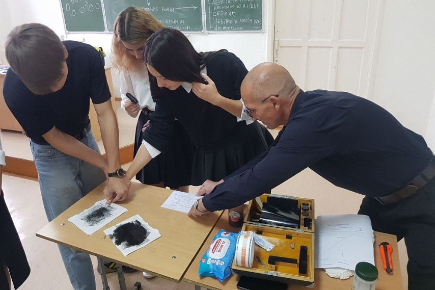 Наставник, эксперт-мастер по компетенции « правоохранительная деятельность » Алексей Некрасов знакомит школьников сразу с двумя профессиями «полицейский» и «криминалист». Подростки знакомятся со спецтехникой, должностными обязанностями участкового, правилами патрулирования территории и работой с ориентировками на преступника. Узнают, что такое трассология и дактилоскопия, исследуют следы, изучают отпечатки пальцев, составляют фотороботы преступников.