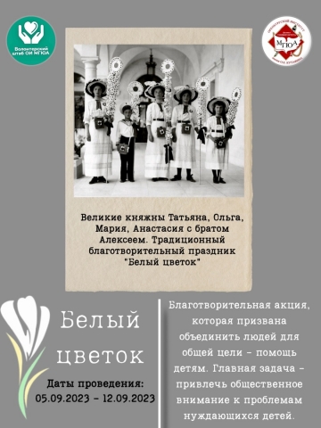 Оренбургский институт (филиал) Университета имени О.Е. Кутафина (МГЮА) продолжает череду добрых дел и в честь Международного Дня благотворительности объявляет о начале акции «Белый цветок».