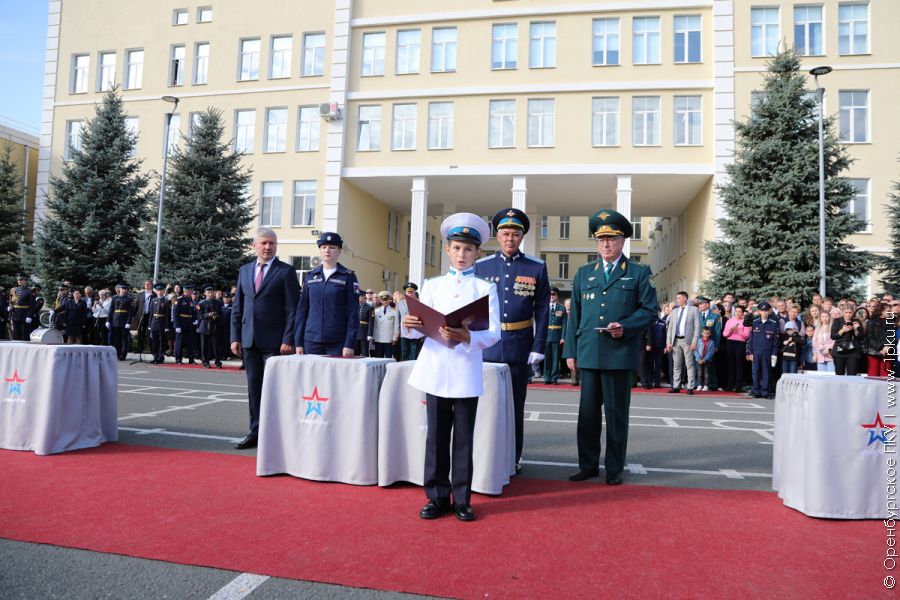 После произнесения кадетами слов священной клятвы малые знаменные эмблемы и удостоверения кадета Оренбургского президентского училища им вручили главный федеральный инспектор по Оренбургской области Владимир Бобров , начальник Главного управления МЧС России по Оренбургской области Александр Зенов , командующий 31-й ракетной армией – начальник Оренбургского гарнизона Сергей Талатынник , заместитель командующего 31-й ракетной армией Михаил Баитов , инспектор группы инспекторов объединенного стратегического командования Центрального военного округа Александр Касьяненко , экс-начальник Оренбургской таможни Владимир Кильдяшев , экс-начальник Главного управления ФСБ России по Оренбургской области Дмитрий Саидов , экс-начальник Управления ФСБ России по 31-й ракетной армии Валерий Канюка , заместитель командующего 31-й ракетной армией по военно-политической работе Сергей Гизатуллин , заместитель начальника Главного управления МЧС России по Оренбургской области Андрей Щербина , заместитель начальника Управления федеральной службы исполнения наказаний России по Оренбургской области Алексей Шошин и заместитель начальника Управления Росгвардии по Оренбургской области Алексей Комков .