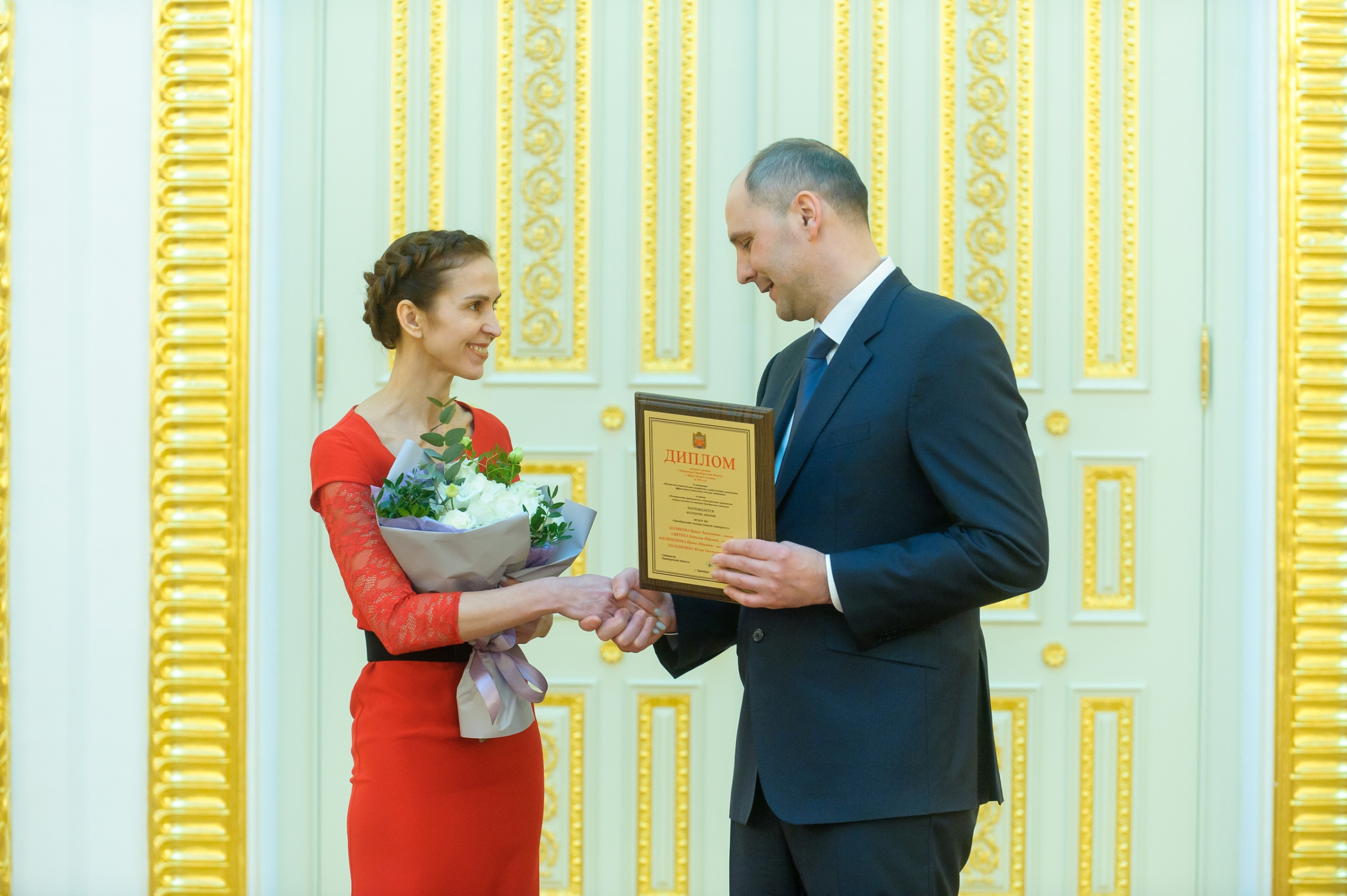 Ирина Филимонова получает диплом из рук губернатора. Фото: ОГУ