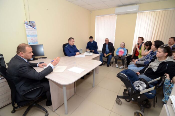 Изначально встреча планировалась во дворе, однако мэр и прокурор сначала общались с частью инициативной группы в офисе управляющей компании. Из более чем сотни пришедших на встречу туда смогли попасть от силы два десятка человек. Примерно через 45 минут Салмин вышел к остальным активистам, стоявшим у входа в офис УК.