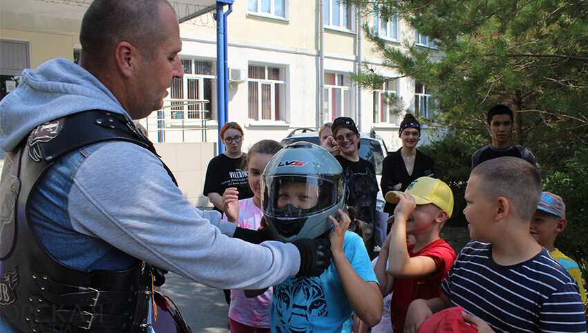 Сотрудники госавтоинспекции наглядно продемонстрировали воспитанникам лагеря и вожатым средства экипировки, необходимые велосипедистам и мотоциклистам для повышения безопасности. Ребята примеряли шлемы и перчатки, налокотники и наколенники. Каждому желающему удалось, что называется, дать газу и услышать рев мотора.