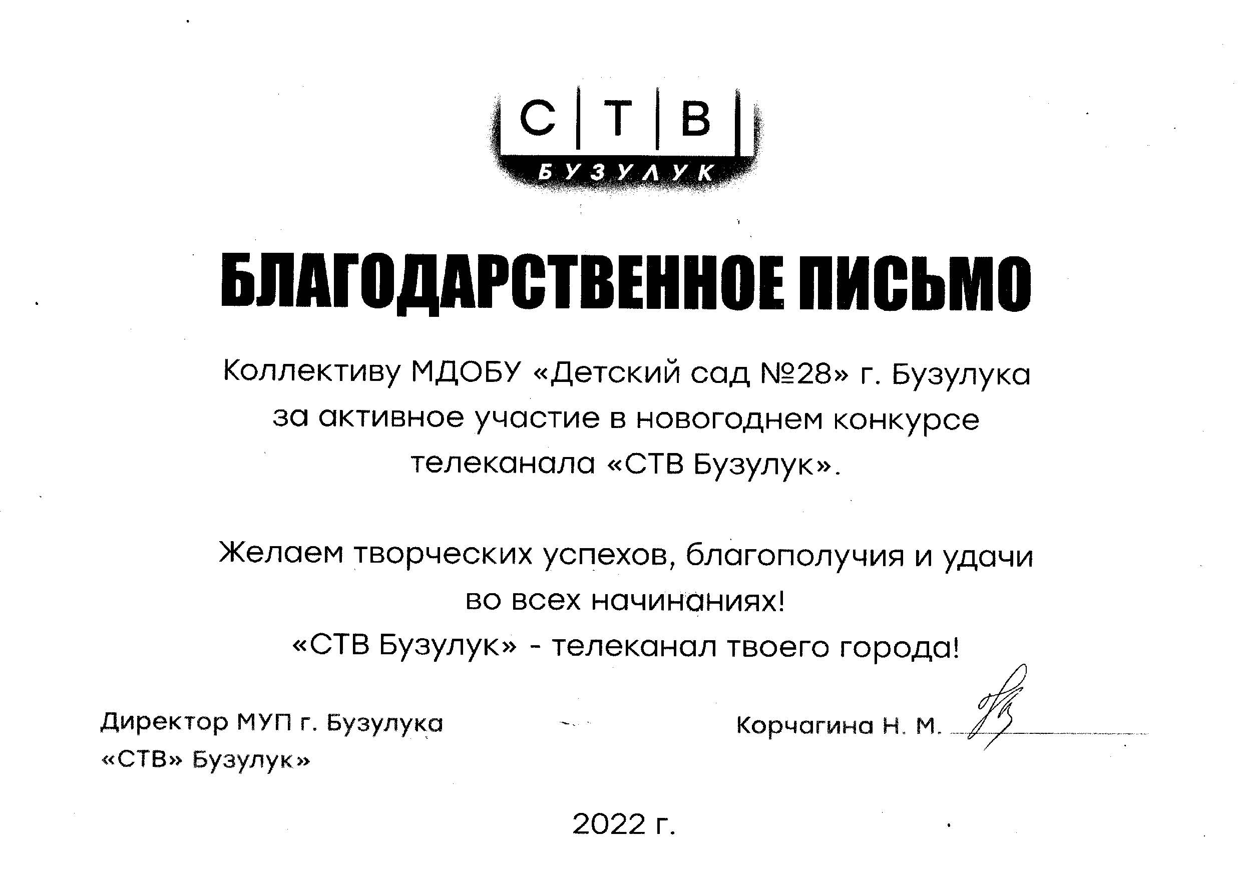 В преддверии волшебного праздника Нового года телеканал «СТВ Бузулук» провёл конкурс на лучшее поздравление от жителей Бузулука. МДОБУ «Детский сад №28» принял активное участие в конкурсе.