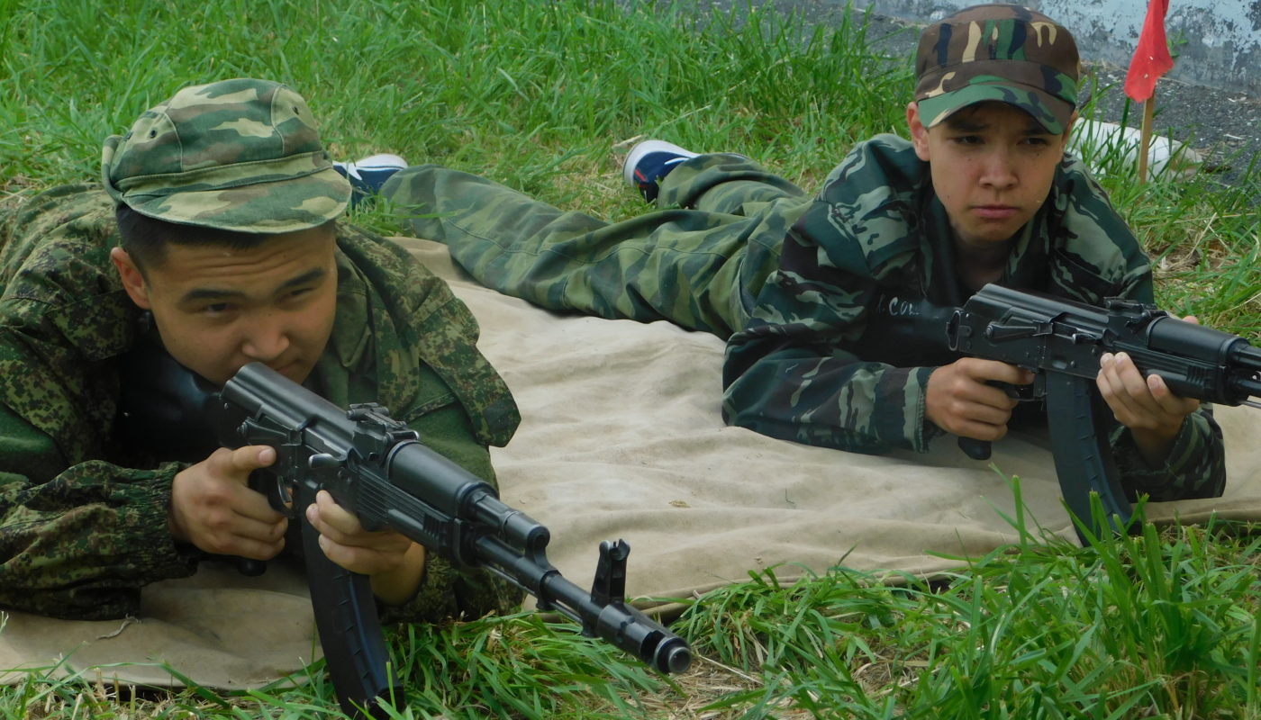 На территорию школы, где базируются ребята, нам не так-то просто было попасть. Караульные строго следят за пунктом пропуска – кто, куда, зачем. Докладывают старшему по званию, что прибыли из редакции. Экскурсию по «гарнизону» проводит заместитель начальника учебных сборов по воспитательной работе Ирина Рожнова. Со второго этажа звучит музыка и громкое: «Россия, Россия…». Это третий взвод готовится к вечернему концерту. Ребята из первого взвода, того, что сегодня в карауле, между сменами тоже учат слова, только своей песни. Второй взвод как раз проходит стрельбы и готов к строевой подготовке. «Курсанты Шакенов и Габбазов для получения боевых патронов прибыли!», – рапортуют десятиклассники, прежде чем начальник огневой подготовки Валерий Попов отправит их: «На огневой рубеж бегом марш!». Как только выстрелы грянут: «Оружие к осмотру!» – не остался ли патрон в магазине, патроннике АК-74.