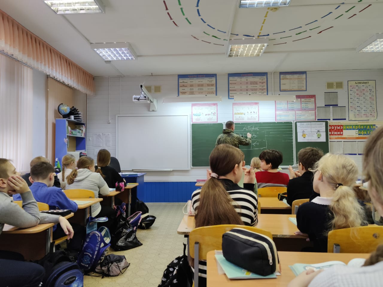 Провел урок тот, для кого подвиг - едва ли не каждодневное дело. Участник СВО в звании гвардии лейтенанта, добровольно отправившийся на фронт по зову сердца сразу же после срочной службы в армии.