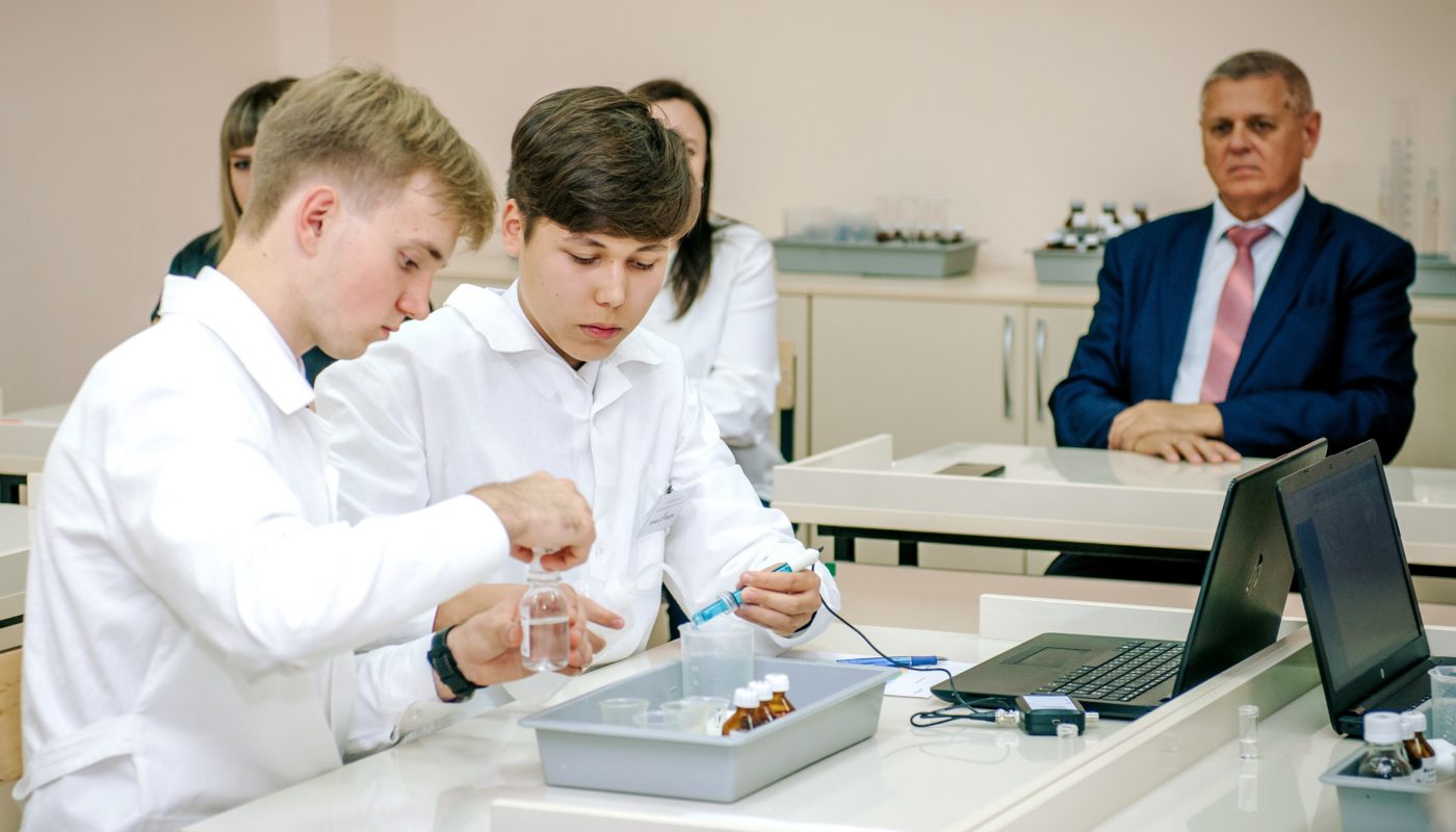 В школе открылись три новых лаборатории — по химии, биологии и физике. В составе оборудования «Точки роста» в лицее теперь имеются цифровые микроскопы, цифровые лаборатории по физиологии, биологии, химии, физике, наборы ОГЭ по химии и физике, учебная лаборатория по нейротехнологии, конструктор для практики блочного программирования с комплектом датчиков, набор по механике, мехатронике и роботехнике, четырехосевой учебный робот-манипулятор с модульными сменными насадками, ноутбуки и МФУ.