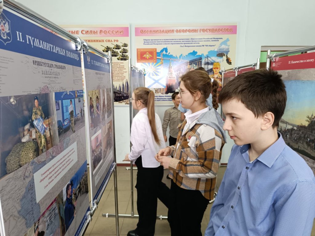 Экскурсию для школьников провел председатель местного отделения ДОСААФ, атаман хуторского казачьего общества «Вольное» Владимир Этманов. Используя материалы Государственного исторического музея, он рассказал ребятам из Соль-Илецкой СОШ № 7 об истории российского казачества с ранних веков до Первой мировой войны. Продолжил атаман свой рассказ, уже о новейшей истории казачества России, знакомством с материалами об участии оренбургских казаков в специальной военной операции.