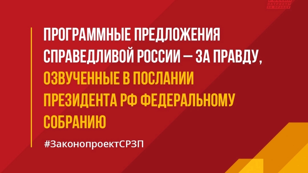 Главные законодательные инициативы СПРАВЕДЛИВОЙ РОССИИ – ЗА ПРАВДУ нашли отражение в Послании Президента