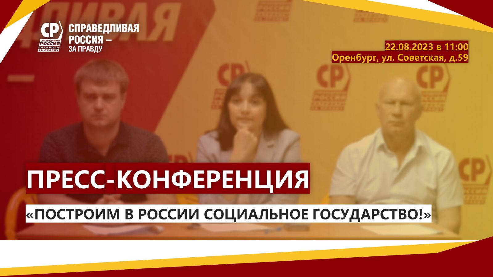 В День государственного флага РФ – 22 августа – состоится всероссийская партийная пресс-конференция "Построим в России социальное государство". В Оренбуржье будет открыта одна из площадок пресс-конференции партии СПРАВЕДЛИВАЯ РОССИЯ – ЗА ПРАВДУ по адресу: Оренбург, ул.Советская, дом 59 (офис партии)