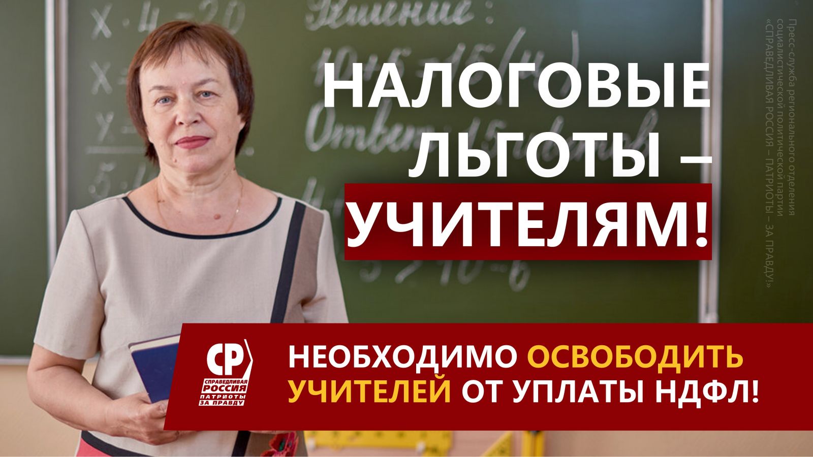 Мы уверены, выход один: нужно повышать зарплаты, предоставлять учителям налоговые льготы, перестать отбирать часть зарплаты учителя в виде НДФЛ, если само же государство платит эту зарплату и, наконец, создать понятную и прозрачную систему оплаты труда – именно это Правительству предлагает сделать ПАРТИЯ " СПРАВЕДЛИВАЯ РОССИЯ – ЗА ПРАВДУ ". Соответствующий пакет предложений уже направлен Михаилу Мишустину и членам Правительства РФ – ждём ответа.