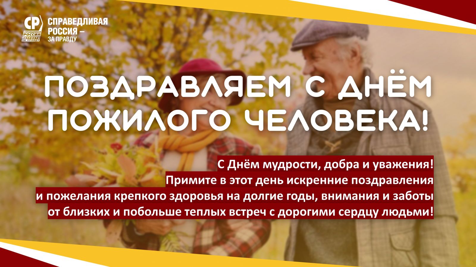 Дорогие наши бабушки и дедушки! Примите в этот день искренние слова благодарности за всё то, что вы уже сделали для живущих поколений! От имени регионального отделения партии СПРАВЕДЛИВАЯ РОССИЯ – ЗА ПРАВДУ мы желаем вам крепкого здоровья на долгие годы, внимания и заботы от близких и побольше тёплых встреч с дорогими сердцу людьми! С праздником!