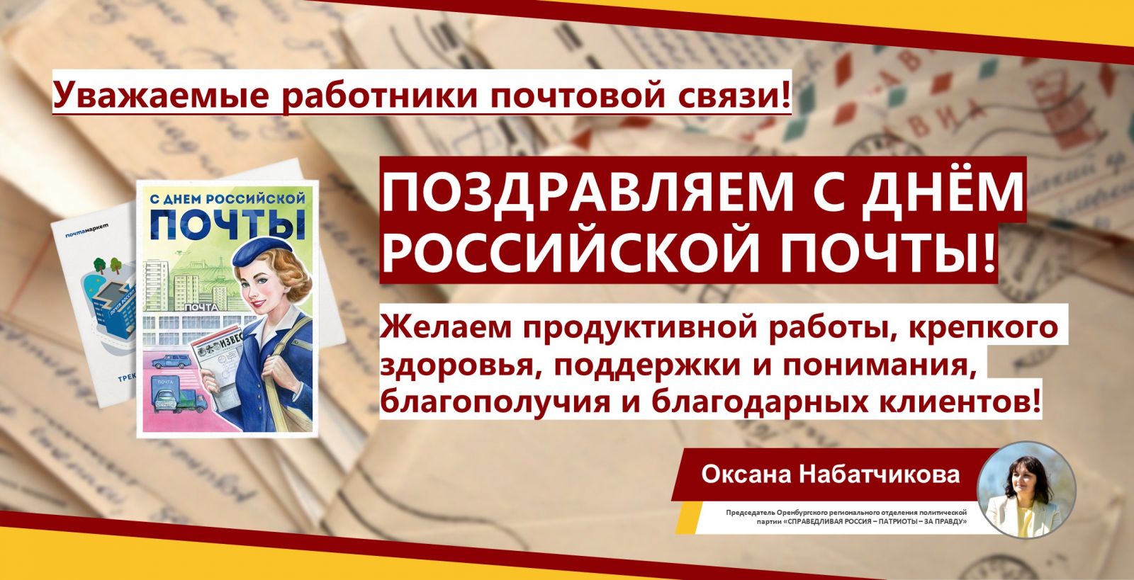 В День работника почтовой связи председатель Оренбургского регионального отделения партии СПРАВЕДЛИВАЯ РОССИЯ – ЗА ПРАВДУ Оксана Набатчикова поздравила всех работников почты с профессиональным праздником!