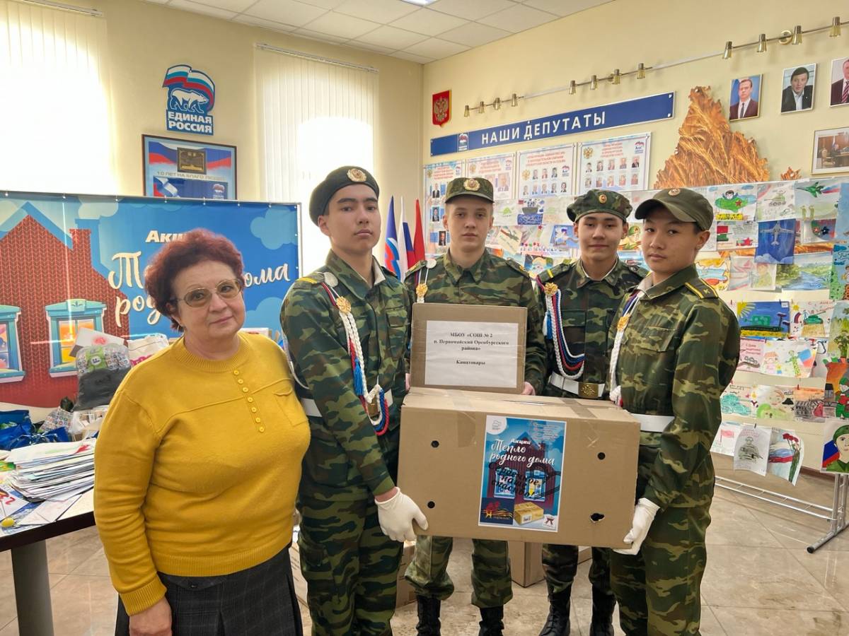 Кадетский класс из Первомайского района передал несколько подарочных коробок, которые отправятся на передовую к 23 февраля.