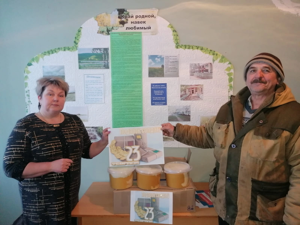 В Грачевском районе жители поселка Подлесный также не остаются в стороне и принимают активное участие в акции. Вяжут носки, собирают посылки с продуктовыми наборами. Игорь Синчук, Владимир Сивцев и Степан Семёнов отправили посылки защитникам с мёдом.