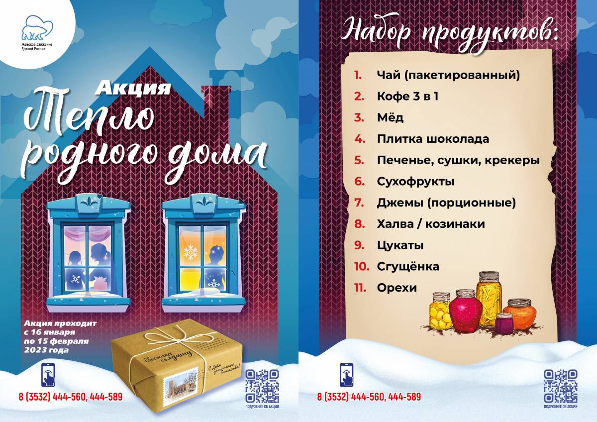 - Совсем скоро 23 Февраля и мы решили поздравить наших ребят, которые сегодня на передовой в зоне СВО и отстаивают интересы Родины, подготовив для них подарки из дома. Наша главная цель – поздравить бойцов с праздником, чтобы они чувствовали нашу поддержку и заботу, что мы их ждем живыми и здоровыми. Ни для кого не секрет, что частичка тепла и весточка из родного дома всегда придает сил, укрепляет веру и дух. Уверена, что вместе у нас это точно получится. Помимо продуктов, которые войдут в подарочный набор, дети могут написать письмо или нарисовать рисунок. Приглашаем всех оренбуржцев и организации присоединиться к акции и сделать её по истине народной. Вместе сделаем большое и доброе дело, - рассказала региональный координатор партийного проекте «Женское движение Единой России» Светлана Алешина.