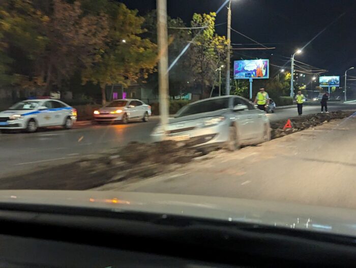 Машина слетела в борозду, которая образовалась на месте демонтированного барьера. Автомобиль остановился в сантиметрах от столба.