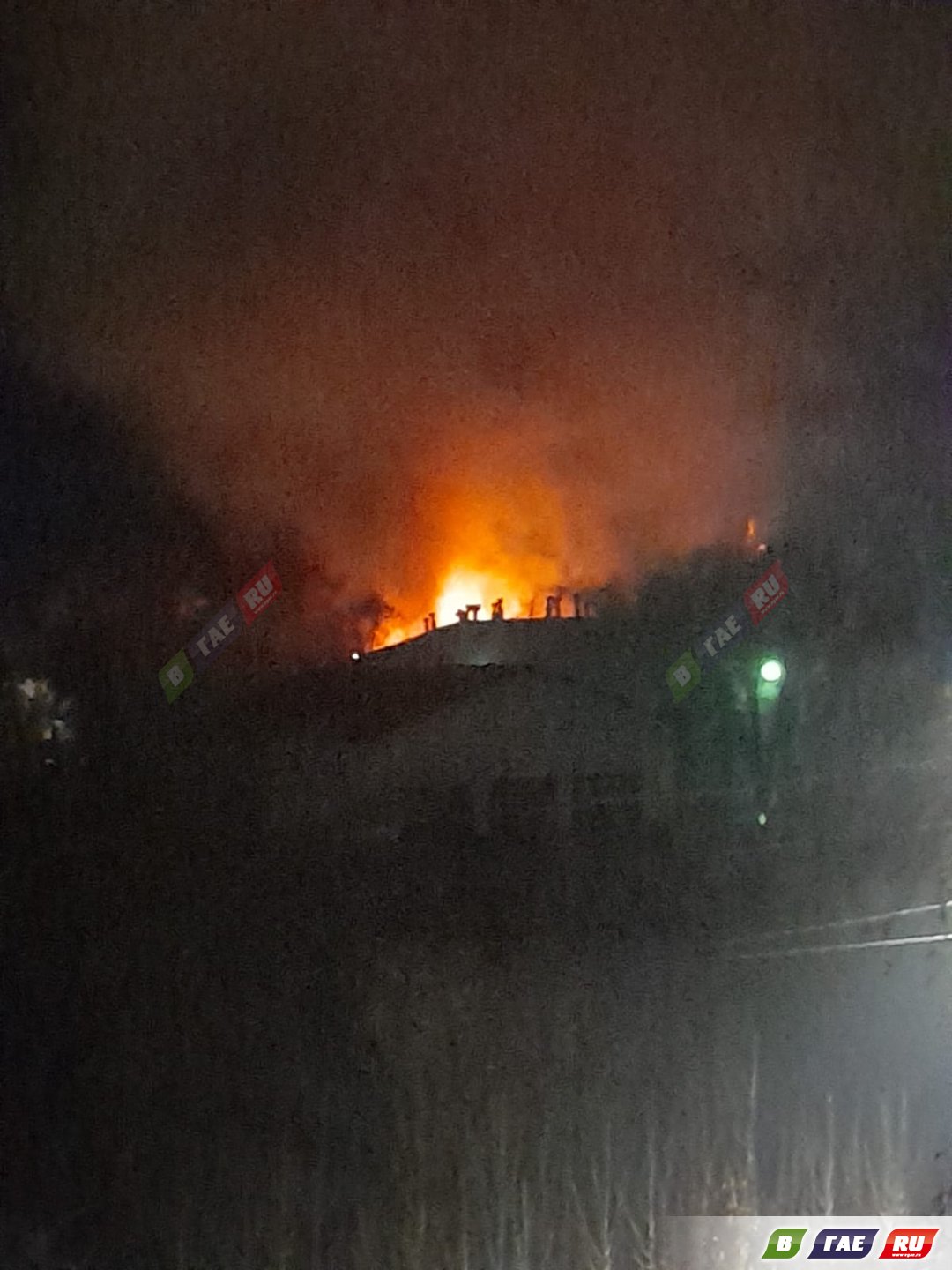 Тревожная ночь выдалась для пожарных и спецслужб Гая с 3 на 4 апреля. Вновь запылал расселенный восьмиквартирный дом на ул. Орской,108. Два пожарных расчета ПСЧ-28 из Гая и один из Орска ведут тушение огня. Скопление спецтранспорта, дорога перекрыта. Пламя вырывается из-под крыши.