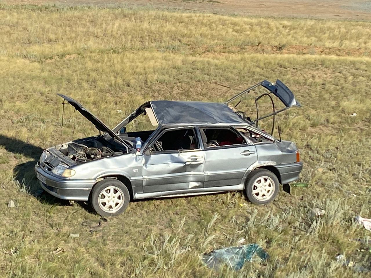Авария произошла на 12 километре около 16:00. Машина вылетела в кювет и перевернулась.