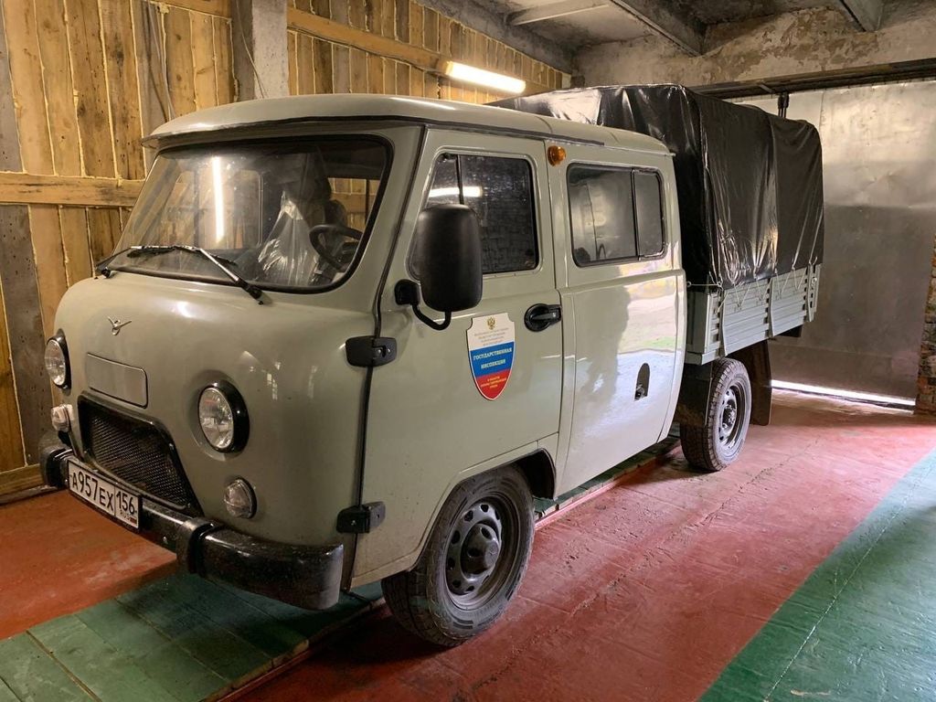 Лесопатрульный комплекс на базе автомобиля УАЗ-фермер, оснащенный установкой высокого давления и емкостью для воды.