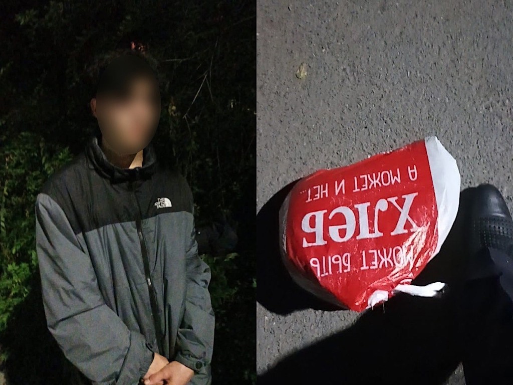 Задержанный подросток и пакет, в котором находилось наркотическое вещество.