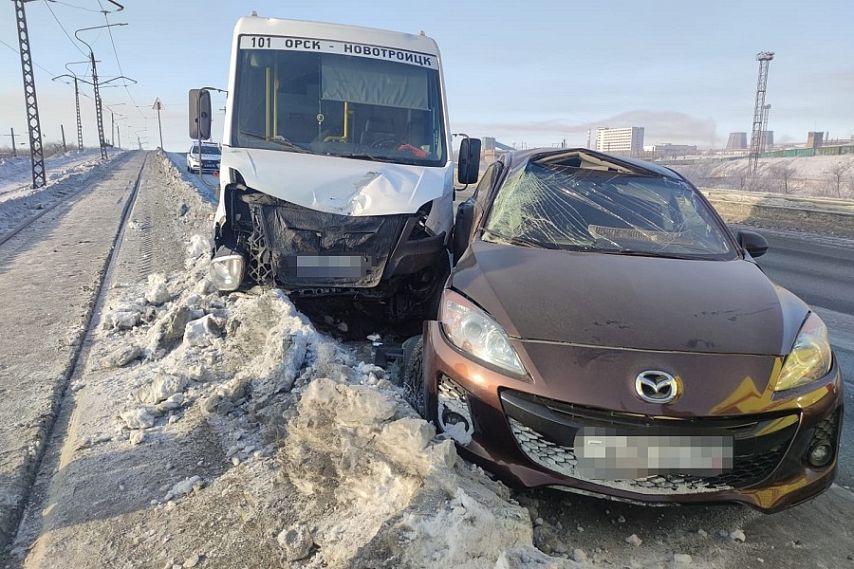 Женщина-водитель вылетела на встречку и врезалась в микроавтобус «Новотроицк-Орск»