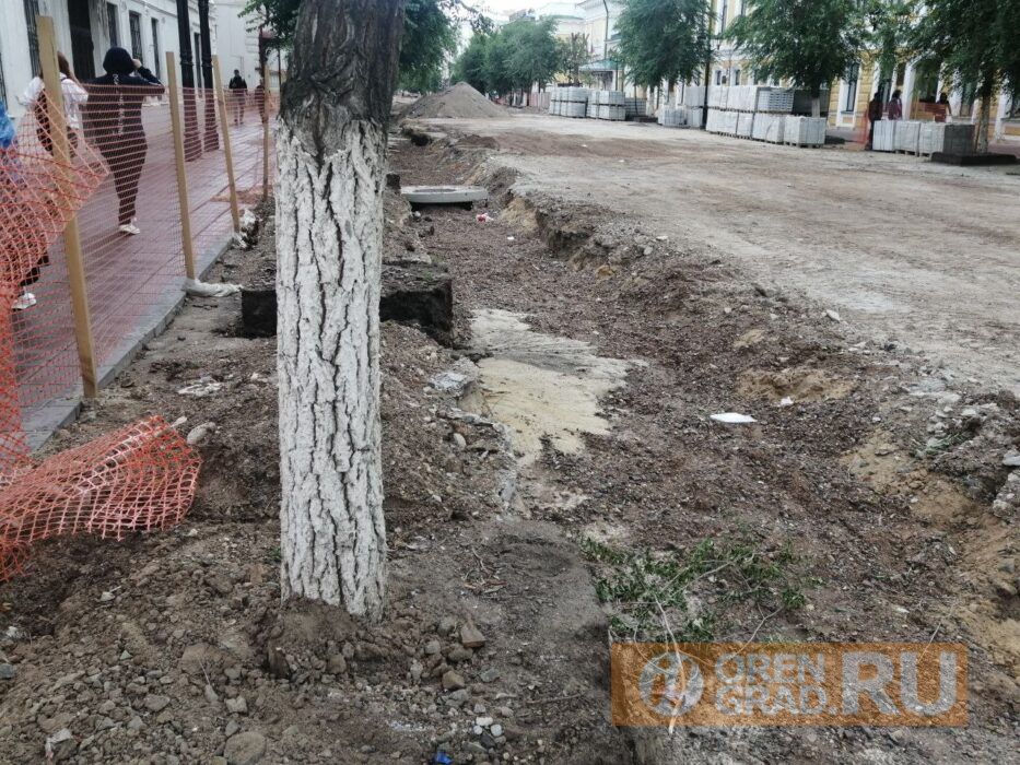 С весны 2023 года на главной пешеходной улице Оренбурга ведется ремонт. Рабочие полностью удалили плитку от бульвара до улицы Правды. Деревья на протяжении двух кварталов оказались заложниками идей архитекторов и их исполнителей. Поливальные машины к ним проехать не могут, а сделанные подкопы к корням здоровых и больших деревьев делают свое пагубное дело. Об этом писал Orengrad.