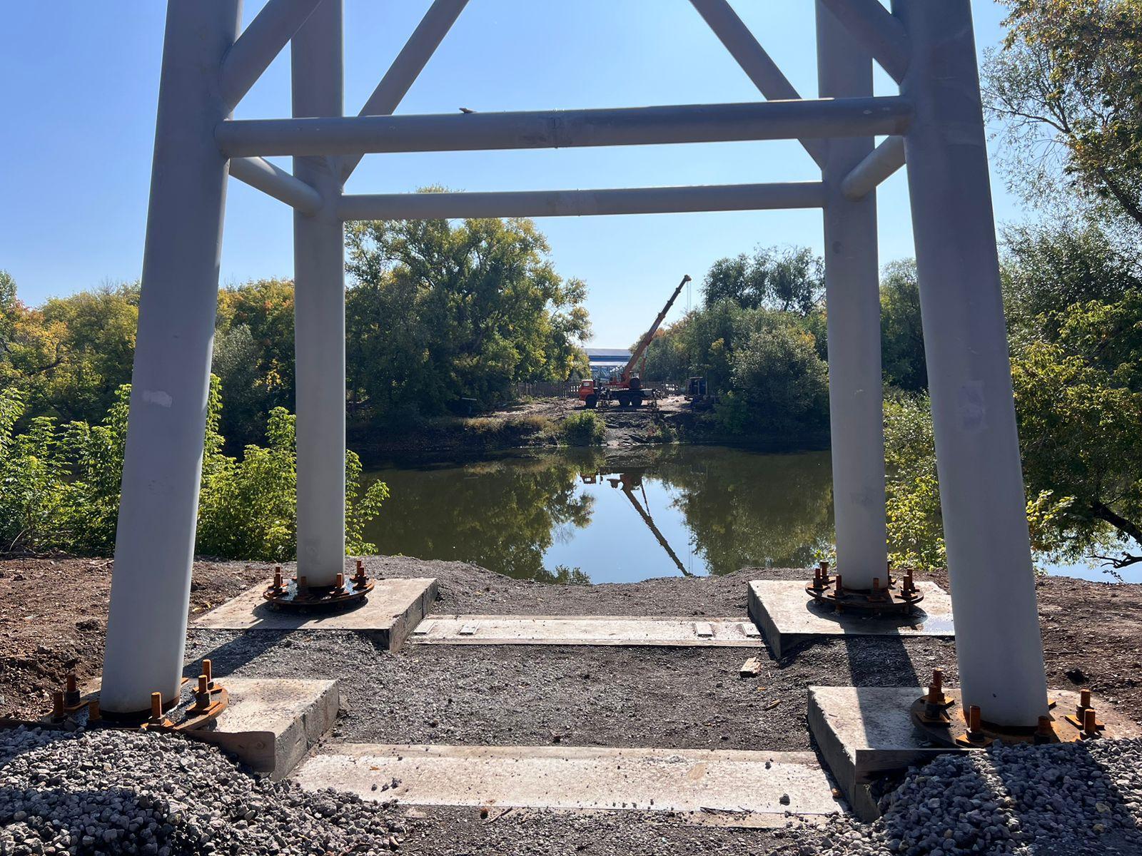 В настоящее время в парке Строителей идут подготовительные работы для монтажа нового пешеходного моста.