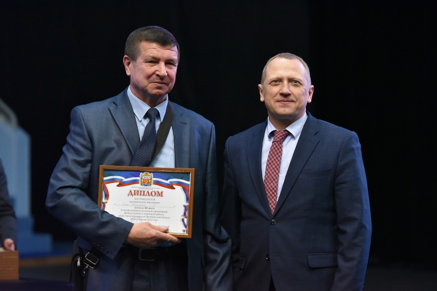 На коллегии подвели итоги регионального смотра-конкурса на лучшую организацию физкультурной и спортивной работы. Муниципальное образование Соль-Илецкий городской округ заняло третье место среди городских округов Оренбургской области по результатам 2022 года. Олег Панькин вручил Диплом минспорта председателю комитета по физической культуре, спорту, туризму, делам молодёжи и работе с общественными организациями администрации Соль-Илецкого ГО Равилу Шангарееву.