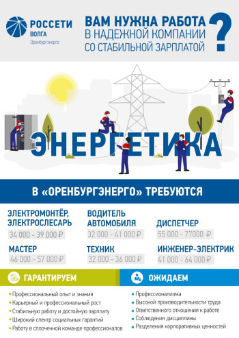 Филиал ПАО «Россети Волга» - «Оренбургэнерго» заинтересован в поиске и привлечении в свои ряды инициативных, энергичных и творческих людей, готовых к совершенствованию профессиональных знаний и опыта!