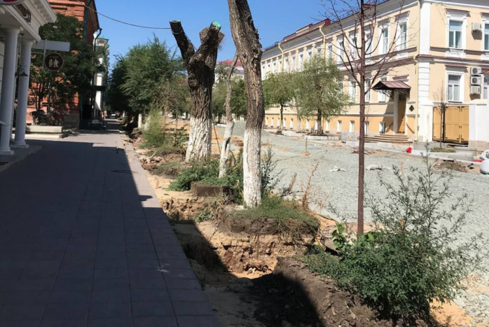 В Оренбурге завершают реконструкцию главной пешеходной улицы города. Из-за земляных работ несколько десятков деревьев были повреждены и засохли.