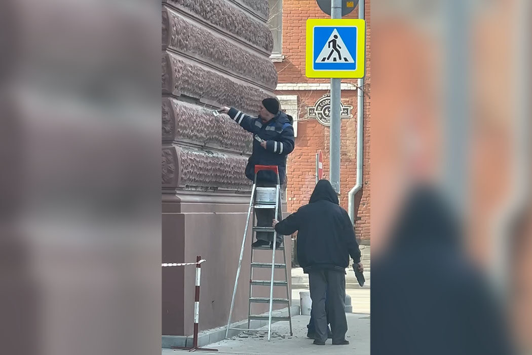 Спустя 5 лет на здании образовались изъяны, которые рабочие неизвестной подрядной организации решительными движениями замазывали их. В государственной инспекции по охране памятников культурного наследия, к числу которых относится и здание мэрии, после полученного видео сообщили, что ремонтные работы без разрешения их ведомства проводится на этом объекте культурного наследия не имеют права. Это серьезное нарушение. На данный момент ни одна подрядная организация не подавала заявку о проведении реставрационных работ. Эксперты госинспекции по данному факту начали проверку, по окончанию которой будет принято соответствующее решение.