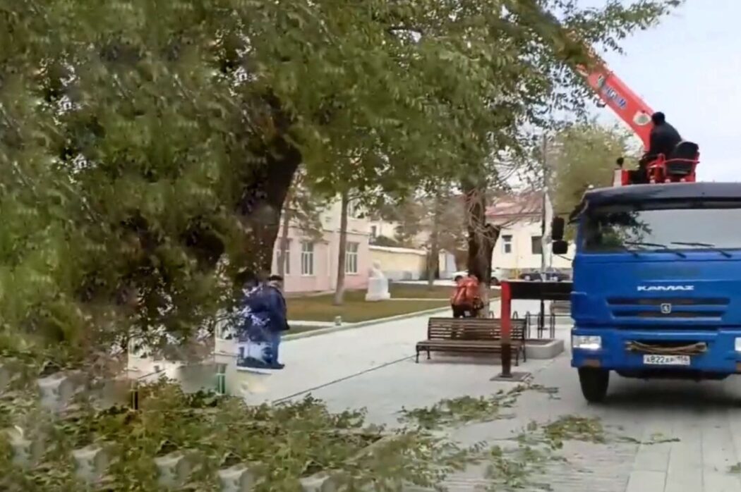 Сегодня горожане наблюдали не самое приятное зрелище – вырубку деревьев на центральной улице города.