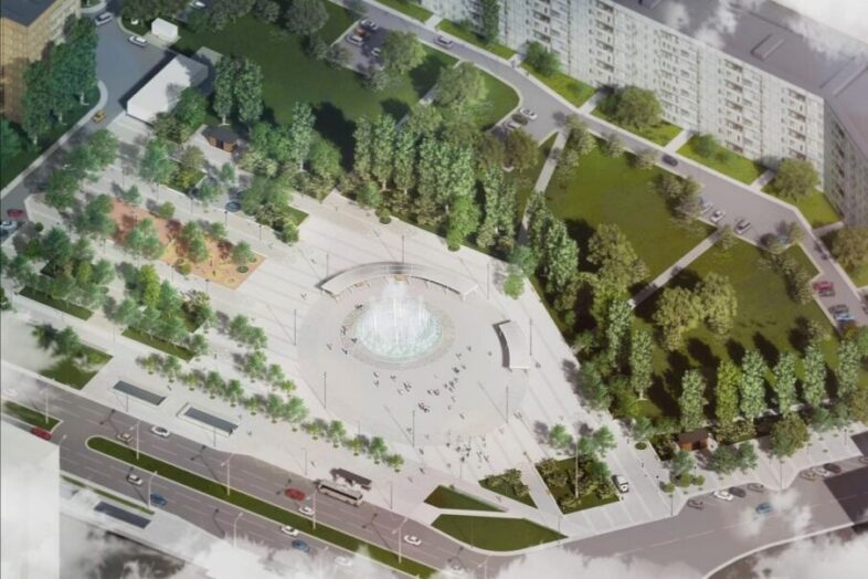 Указывается, что в скверу разместят фонтан, детскую и спортивную площадки, зону для тихого отдыха и места для нестационарной торговли. Зимой в сквере намерены обустраивать каток.