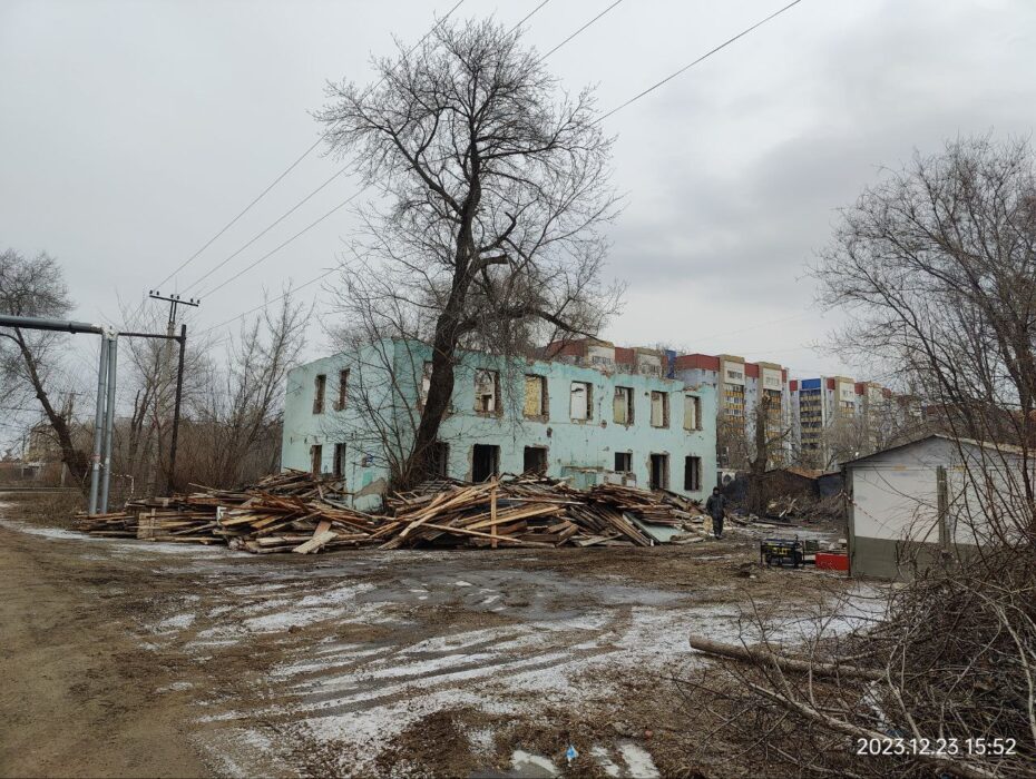 В ноябре был объявлен тендер на снос здания и во второй половине месяца был выбран подрядчик из Самары, который за 600 тысяч должен был до 10 декабря выполнить работы: снести здание, рядом расположенные гаражи, вывезти мусор и выровнять земельный участок. На календаре 27 декабря, но здание разобрано лишь частично, мусор продолжает лежать рядом, а территория не огорожена.