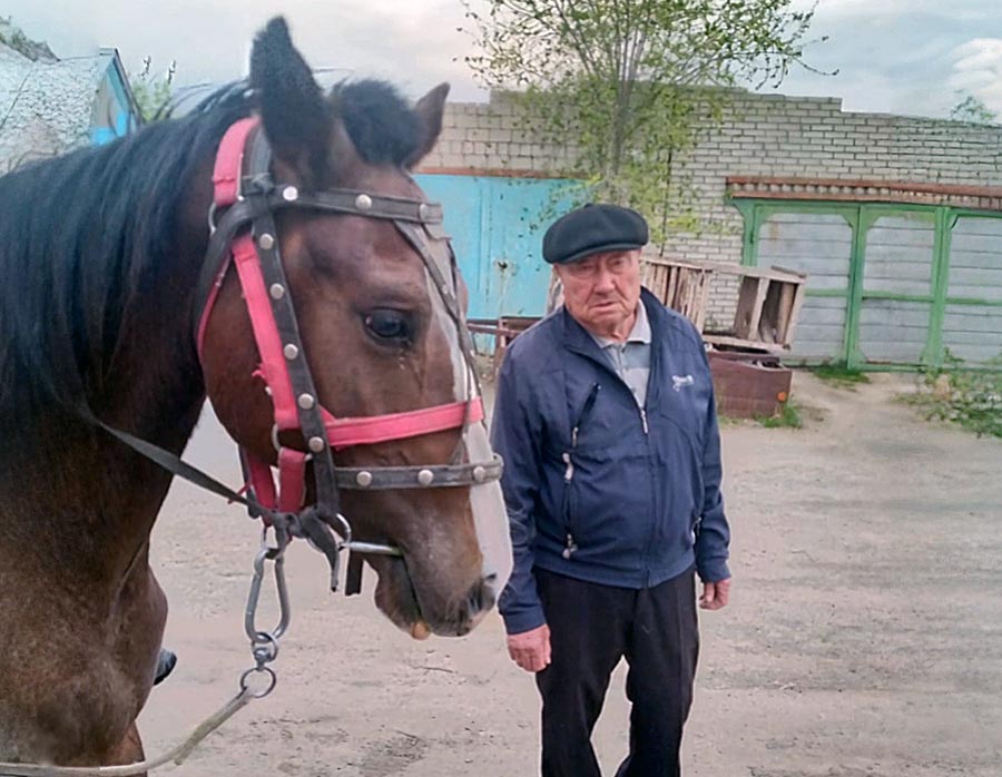 Сейчас в конюшне пенсионера 14 лошадей разных пород: ахалтекинцы, владимирские тяжеловозы, рысаки. За всеми он ухаживает сам.