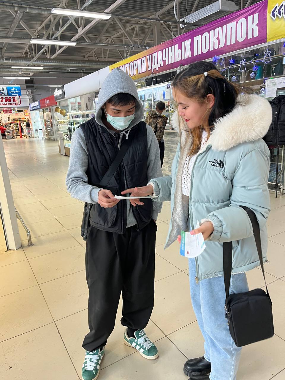 Волонтеры Соль-Илецкого городского округа раздают листовки в торговых центрах с информацией о голосовании за проекты «Комфортной городской среды».